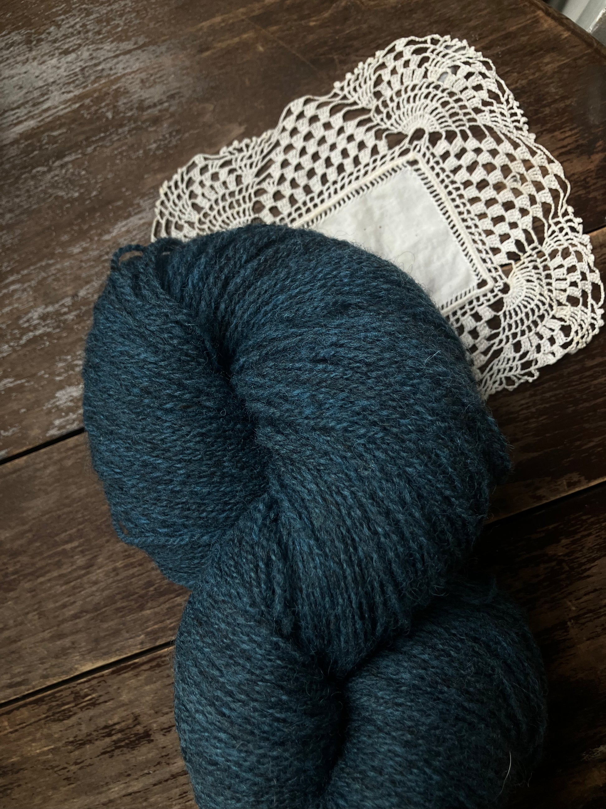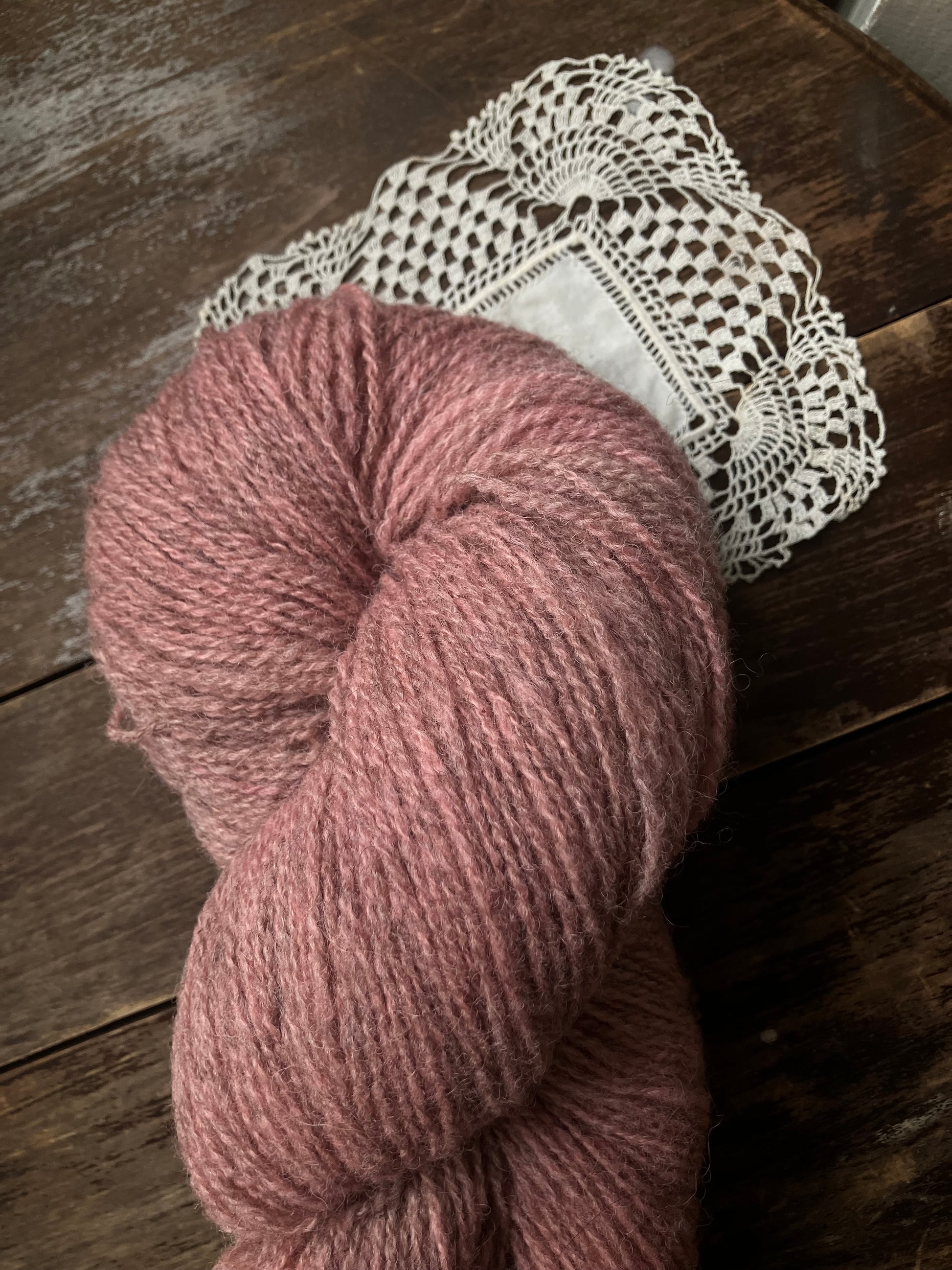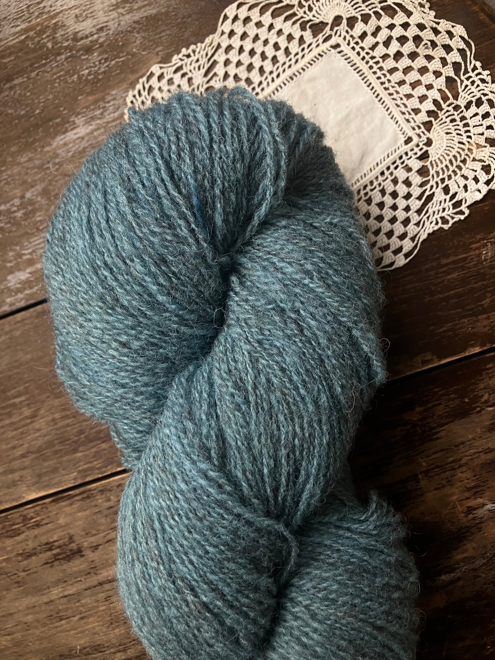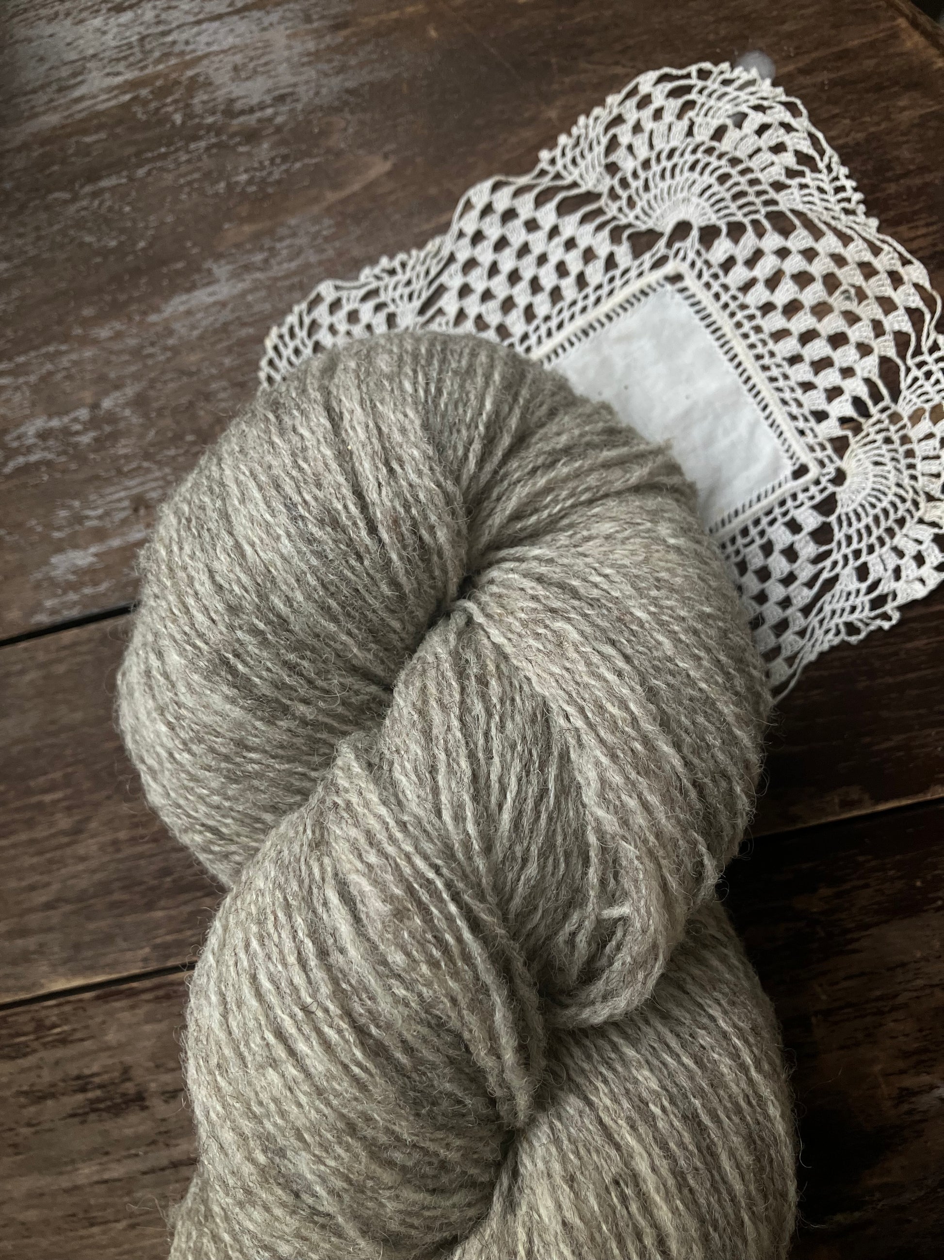 Naturally dyed fingering weight yarn from Ouessant wool.