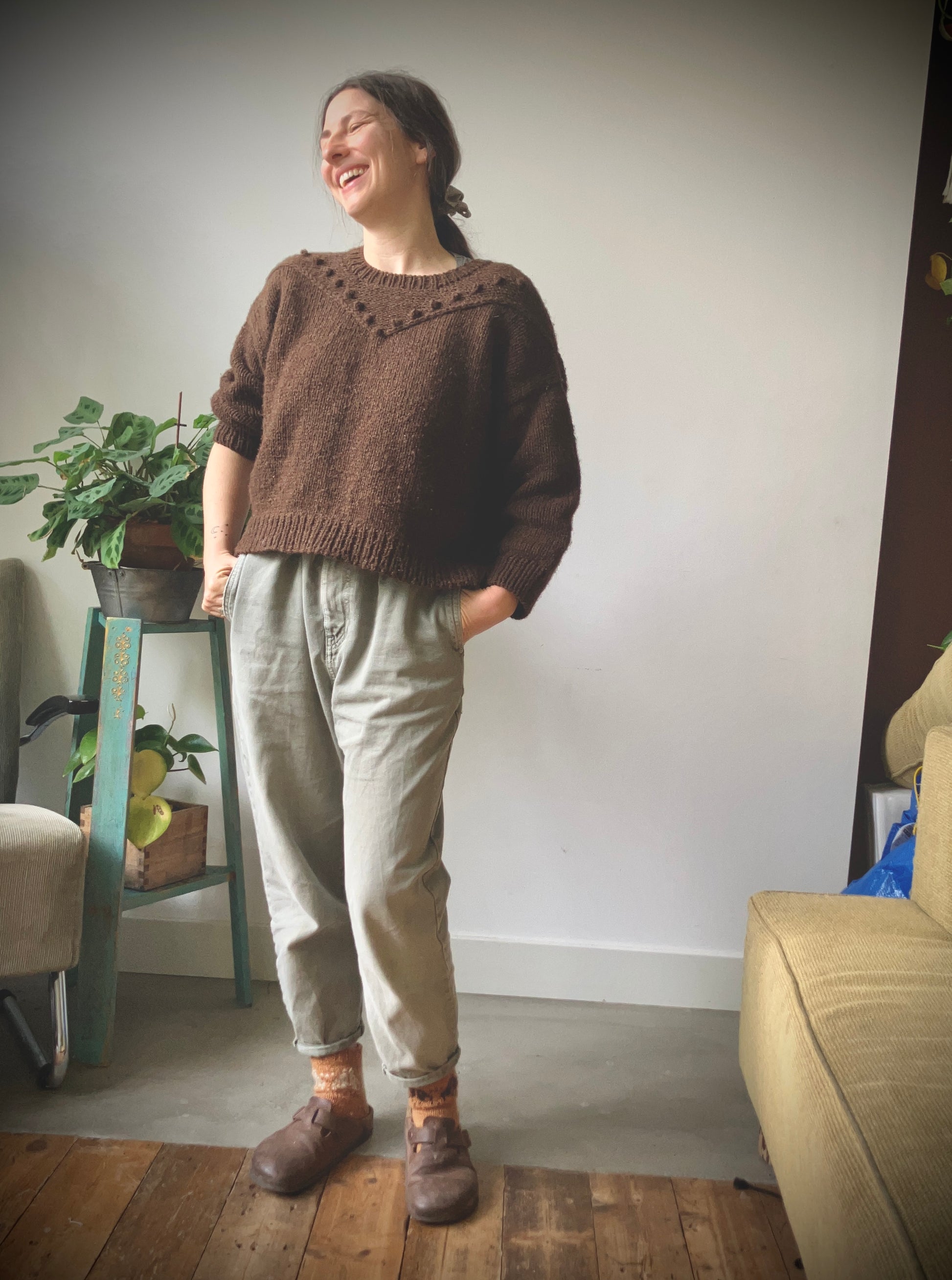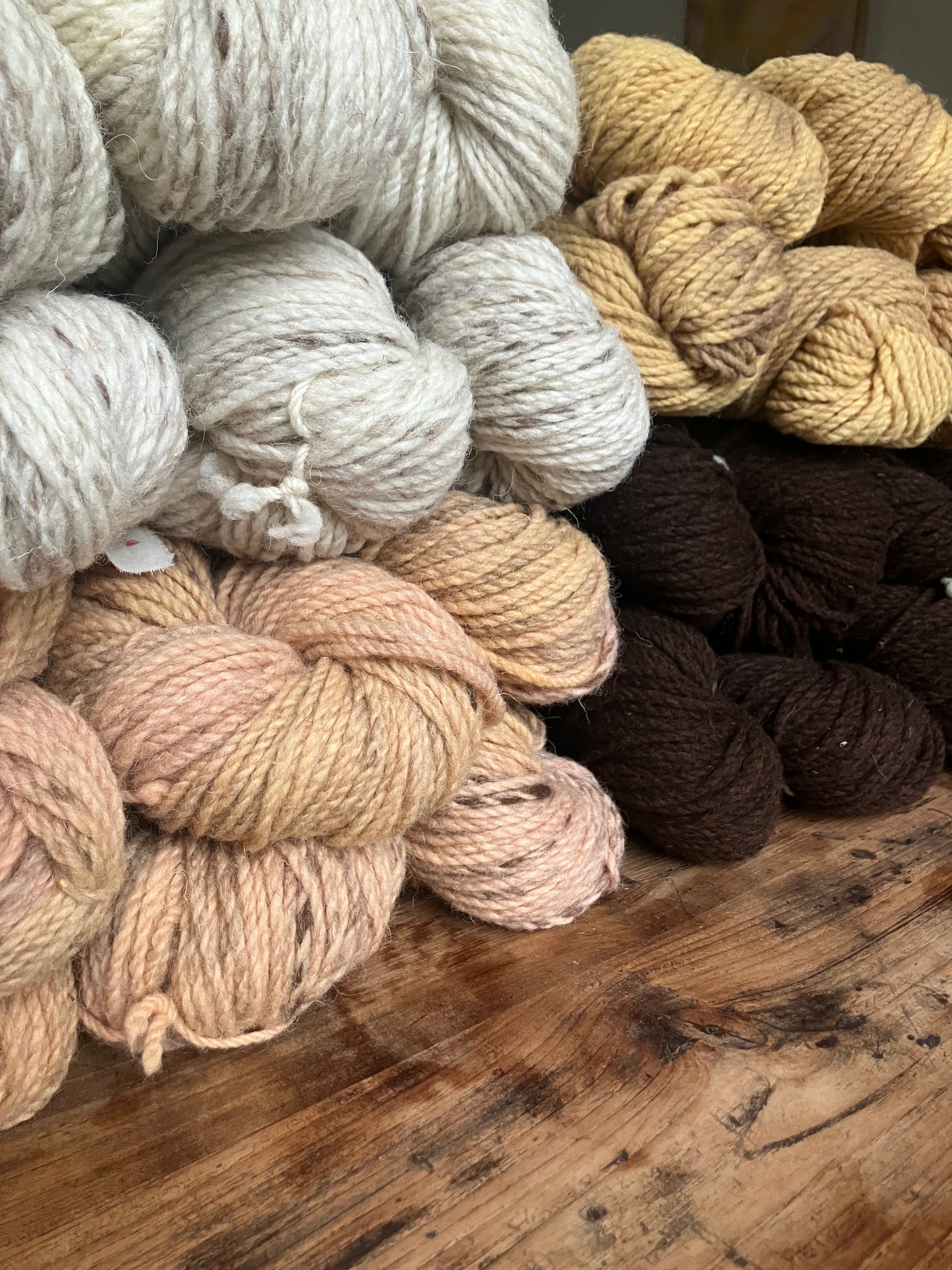 Knitting kit for Galagonya sweater with naturally dyed/undyed wool and written pattern in English.