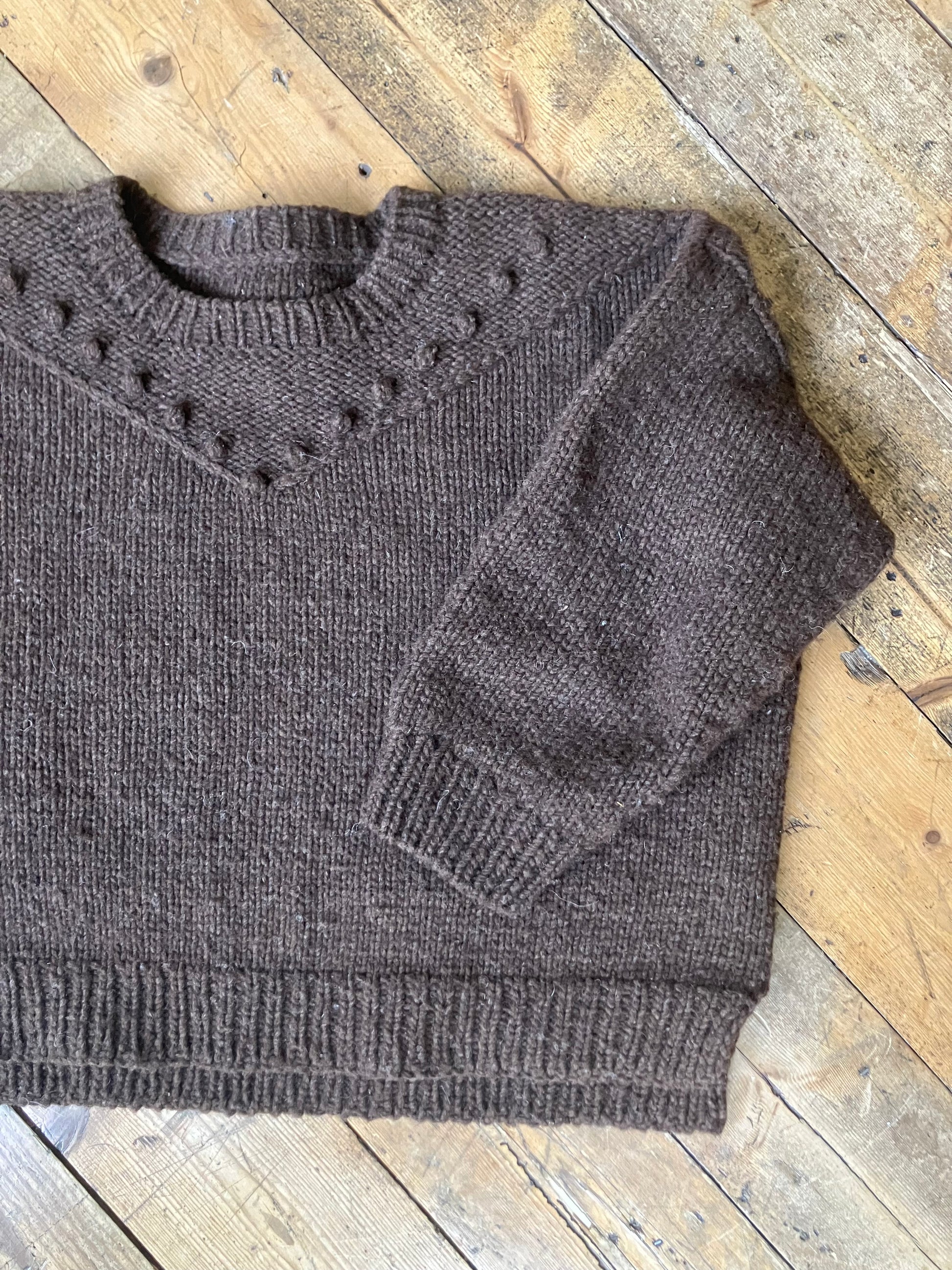 Needles: 5 mm for neck, hems and cuffs