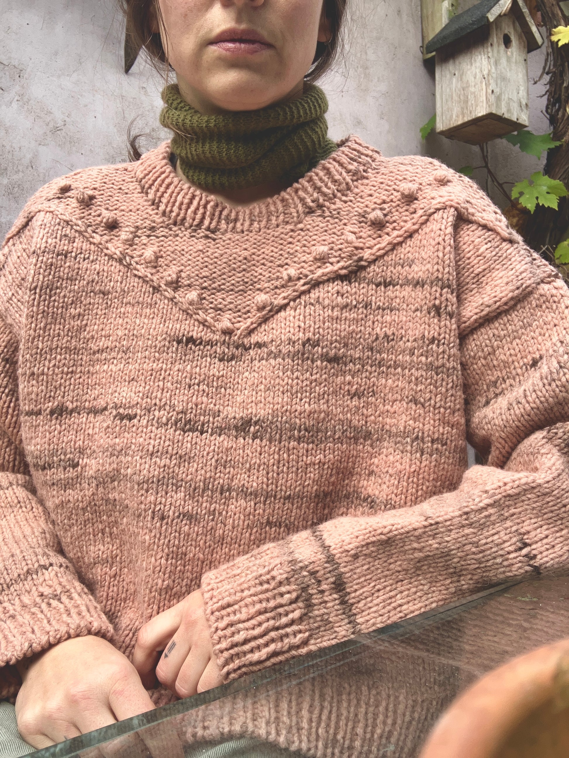 Galagonya means “hawthorn” in Hungarian. The fiery red berries standing out in the late autumn forests inspired this thick sweater that is going to be your best companion in the cold season. The delicate yoke pattern gives an elegant touch, making it your favorite everyday piece that matches with practically everything.
