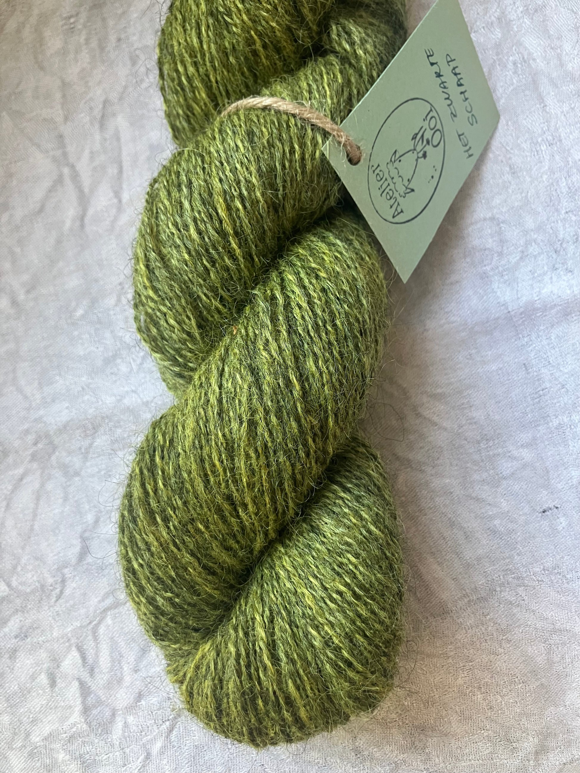 De Ullstee has a small flock of gotland sheep and they collect the fleeces of the neighbourhood to turn them into this amazing shiny and drapey yarn with a beautiful halo. It's a rather rustic yarn - not for everyone but garments knitted with it will last a lifetime.
