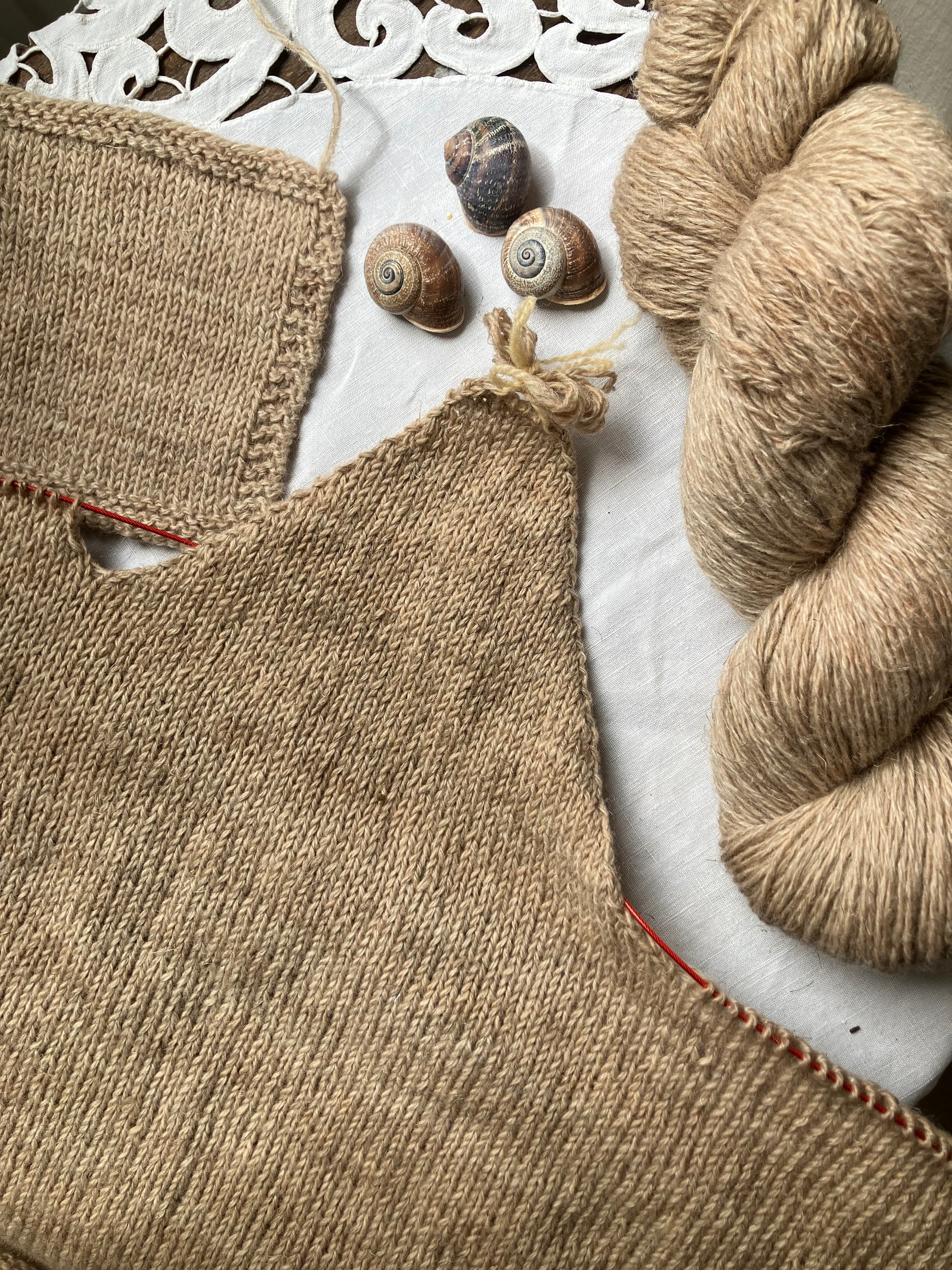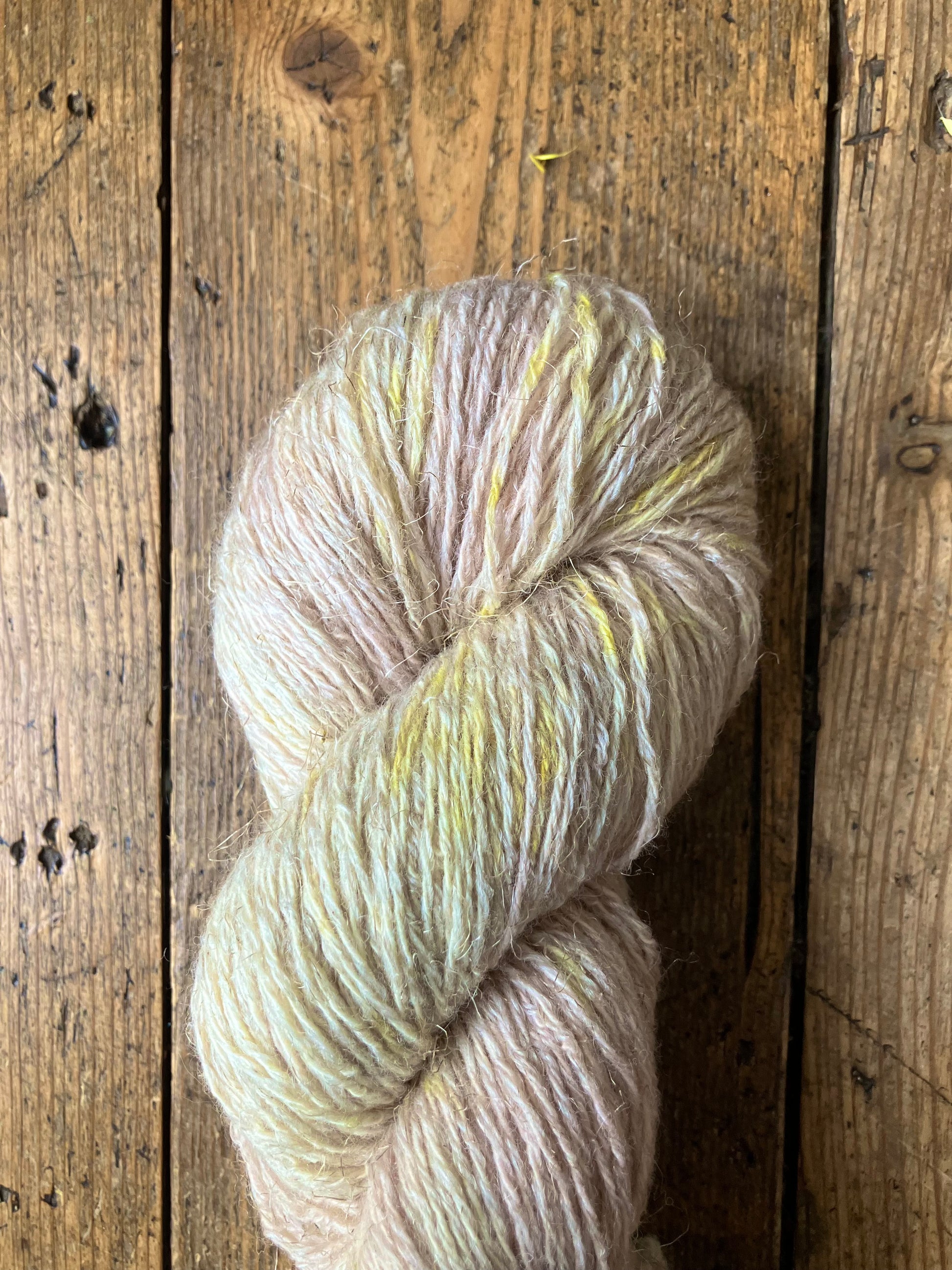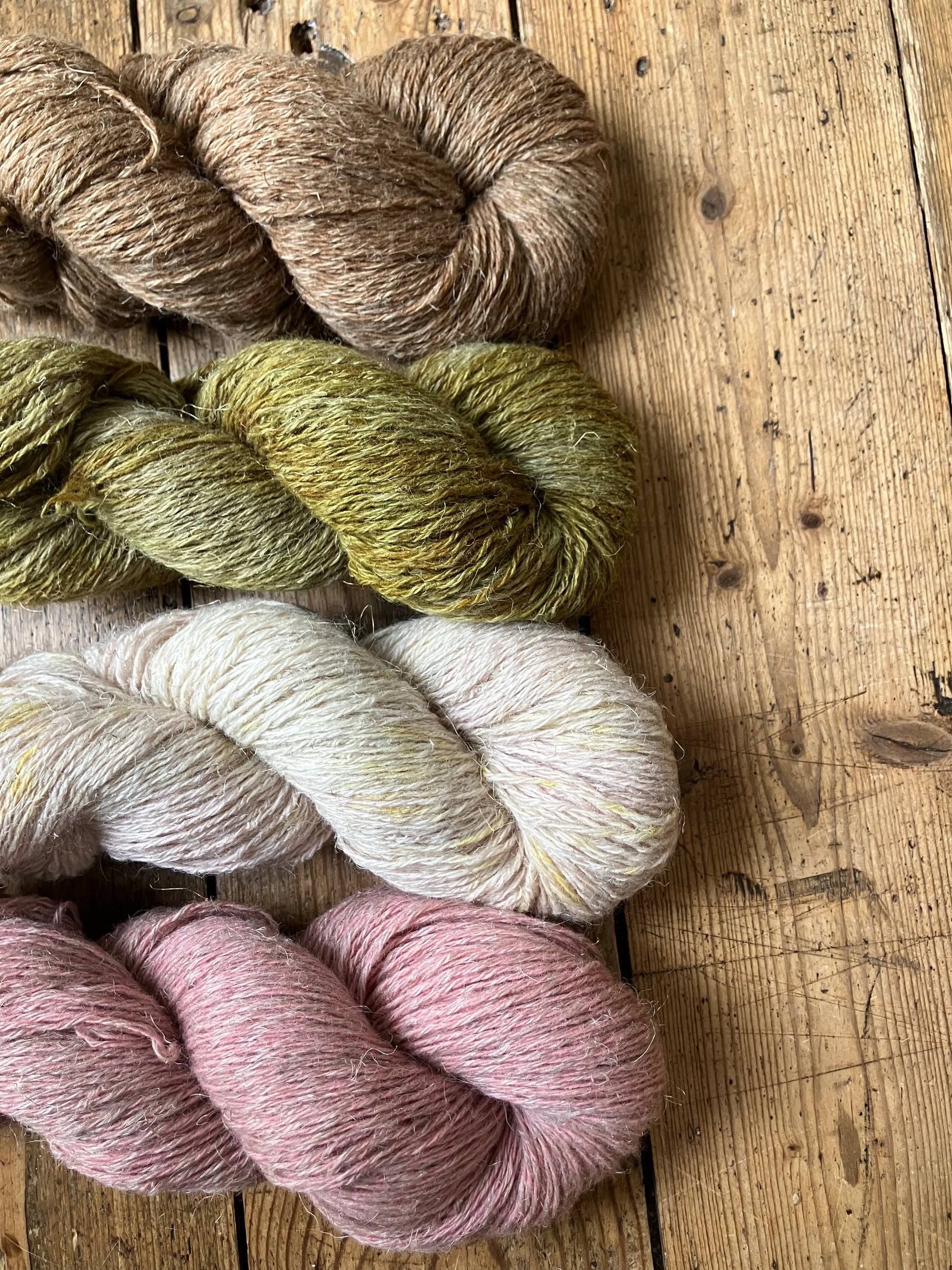 One of the characteristics of plant dyeing is that there will never be two completely identical skeins, so for larger pieces, it is recommended to alternate the skeins during knitting so that there is no noticeable contrast.