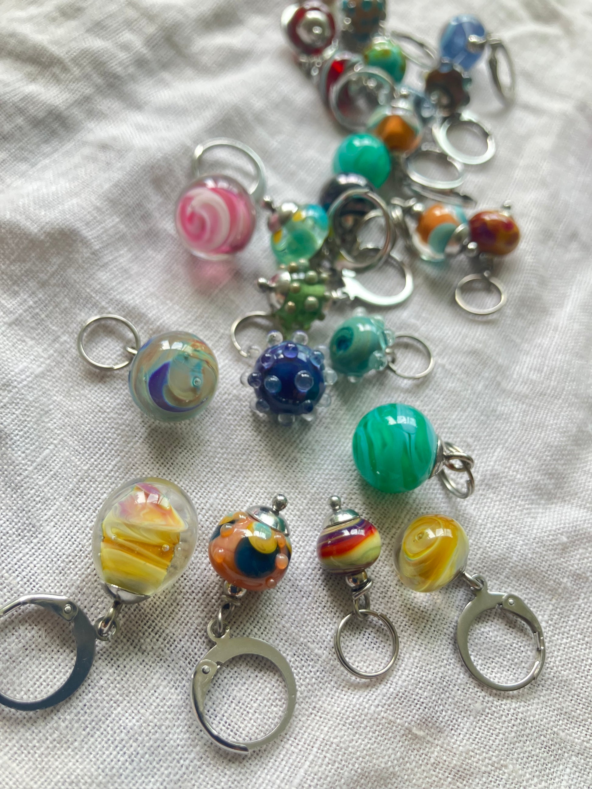 Unique handmade glass stitchmarkers - also great as jewelry. They are made by the talented glass artist and jeweller Barbara Moro.